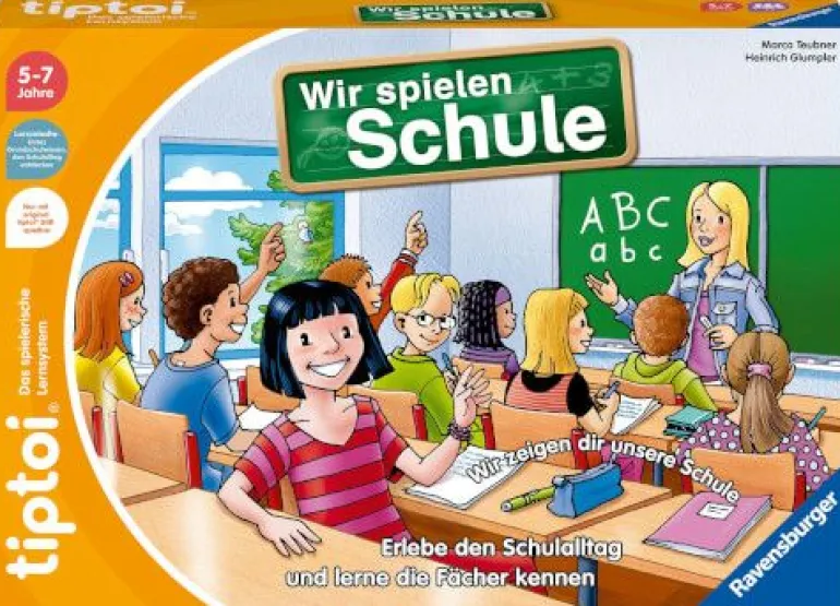 Was passiert am ersten Schultag? Und was gehört alles in die Schultasche? Mit Wir spielen Schule“ gewinnen 1 – 4 Kinder von 5 – 7 Jahren Einblicke in das Leben eines Schulkindes. Die Kinder schlüpfen in die Rollen der Schüler und erleben einen kompletten Schultag. Sie lösen knifflige Aufgaben in den Fächern Mathematik, Deutsch, Sachkunde, Sport, Kunst, Kultur, Musik, hören spannende Pausengeschichten und vieles mehr.Mit “tiptoi Wir spielen Schule“ erleben die Spieler einen spannenden Schultag mit je vier Unterrichtsstunden und einer großen Pause. Während die Kinder beim Sportunterricht selbst aktiv werden, wird im Deutsch- oder Mathematikunterricht Wissen abgefragt.