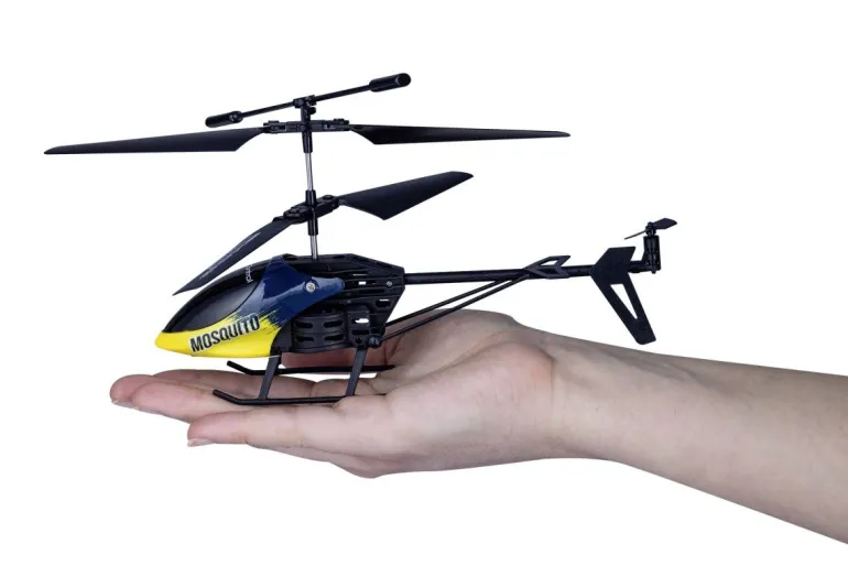Klein und wendig fliegt dieser 2-Kanal Helikopter mit IR-Fernsteuerung durchs Zimmer. Stabile Flugeigenschaften dank Gyro. Mit LED Frontbeleuchtung. Ersatzrotoren enthalten. Mit LiPo Akku und Ladegerät. 3 x 1,5 V (AAA) Batterien für die Fernsteuerung benötigt / nicht enthalten. Ab 8 Jahren.