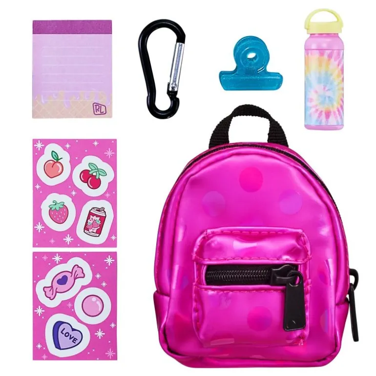 s gibt 6 Rucksäcke von Real Littles in verschiedenen Farben, Styles und aus unterschiedlichen Materialien zum Sammeln – alle mit praktischem Reißverschluss! Jeder Mini-Rucksack ist mit einem Karabinerhaken ausgestattet, sodass du ihn an deiner Tasche oder deiner Jeans befestigen kannst! Unzählige winzige Schreibwaren-Überraschungen warten auf dich! Sammle sie alle! Du kannst sie mit Freunden tauschen und dir so die ultimative Schreibwarensammlung im Miniaturformat sichern! Real Littles sind „Things you love made Micro“ – also alles, was du magst, im Miniformat!“