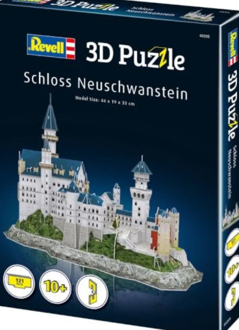 Das Schloss Neuschwanstein wurde von Ludwig II. von Bayern als Rückzugsort und als Hommage an seinen Lieblingskomponisten Richard Wagner in Auftrag gegeben. Es ist eines der meistfotografierten Gebäude in Deutschland und beliebtes Reiseziel für Touristen aus aller Welt. Bastelspaß für Jung und Alt! Mit den Revell 3D Puzzeln lassen sich weltbekannte Gebäude, imposante Skylines oder legendäre Fahrzeuge als dreidimensionale Modelle für jedermann zusammenbauen. Die präzise gestanzten Schaumstoffbauteile machen den Zusammenbau einfach – Keber oder Werkzeug wird dafür nicht benötigt. Je nach Größe und Komplexität des Modells reicht der Bastelspaß von einigen Minuten bis zu mehreren Stunden.
