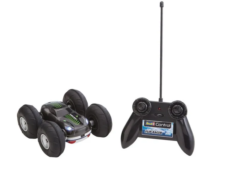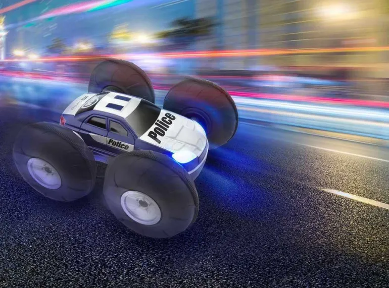 Das 2 Side-Car vereint Jäger und Gejagter in einem Car . Bei jedem Flip schlüpfst Du in die andere Rolle. Unterstützt durch große Ballonreifen, dem Einzelradantrieb und der LED Scheinwerfer lässt sich der FlipRacer auch im Dunkeln exakt steuern. Sofort einsatzbereit, keine lange Ladezeiten durch Einsatz von AAA-Batterien.