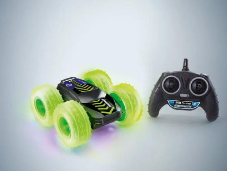 Durch den kraftvollen Allradantrieb lässt sich jedes Hindernis bewältigen. Ob 180°Flips oder 360°-Spins, viele coole eigene Stunts sind möglich. Egal ob bei Tag oder Nacht die effektvoll beleuchteten LED Räder zeigen dir den Weg. Dank der 2.4 GHz Technologie kannst du zusammen mit deinen Freunden auf die Piste gehen.