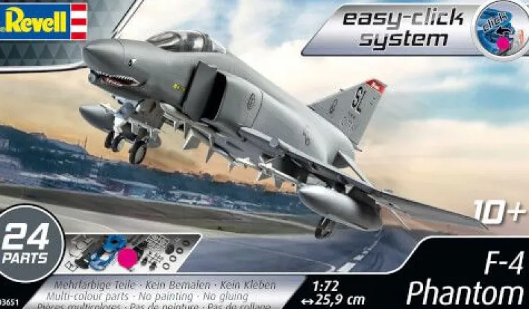 Einfacher Modellbausatz der F-4 Phantom, einem der legendärsten Kampfflugzeuge der USAF. – Fahrwerk – Steckbausatz, kein Kleben notwendig – Lenkwaffen – 2 Zusatztanks Bastelspaß mit tollem Ergebnis für alle ab 10 Jahren. Durch das innovative easy-click-system ist schneller Erfolg garantiert: Mehrfarbige, präzise gefertigte Bauteile werden durch einfaches Zusammenstecken stabil verbunden und mit Stickern dekoriert. Eine Bemalung ist nicht notwendig! Optional kann das Modell zusätzlich bemalt werden und wird damit zum ganz persönlichen Unikat. Eine Empfehlung mit bis zu 5 Farben ist in der Bauanleitung enthalten.