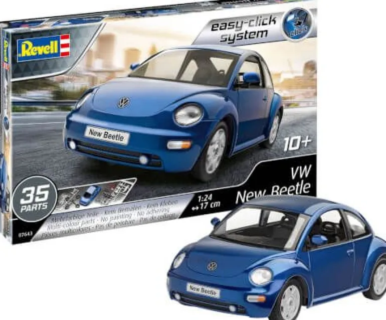 Einfacher Modellbausatz zu dem ab 1997 gebauten VW New Beetle, der mit seiner runden Formgebung an das Design des legendären VW Käfer erinnert. – Eingefärbte Karosserie – Metallachsen und Schrauben – Steckbausatz, kein Kleben notwendig – Drehbare Räder – Sticker und Decal enthalten Bastelspaß mit tollem Ergebnis für alle ab 10 Jahren. Durch das innovative easy-click-system ist schneller Erfolg garantiert: Mehrfarbige, präzise gefertigte Bauteile werden durch einfaches Zusammenstecken stabil verbunden und mit Stickern dekoriert. Eine Bemalung ist nicht notwendig! Optional kann das Modell zusätzlich bemalt werden und wird damit zum ganz persönlichen Unikat. Eine Empfehlung mit bis zu 5 Farben ist in der Bauanleitung enthalten.