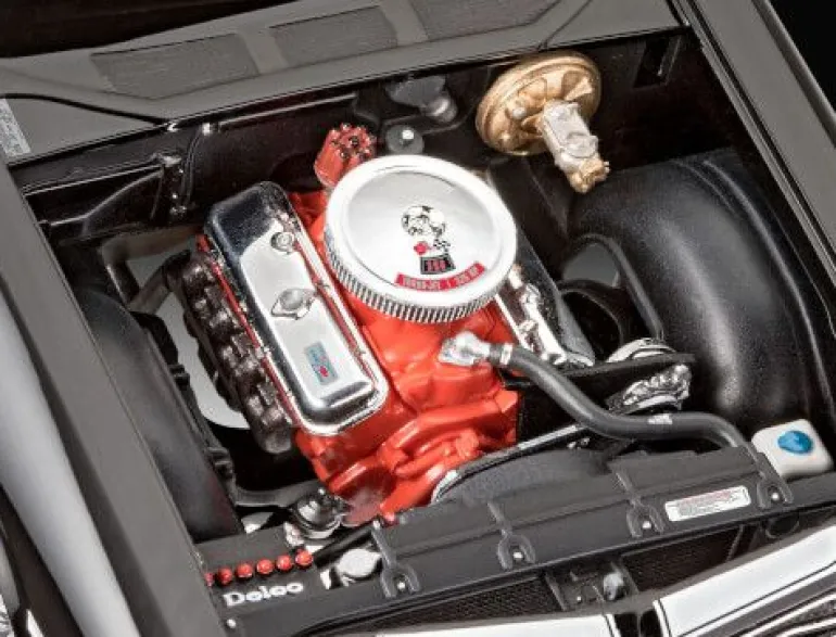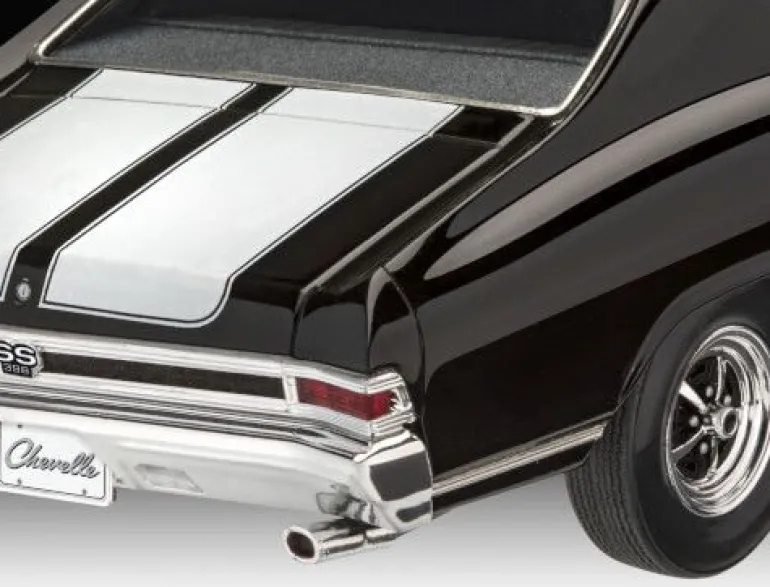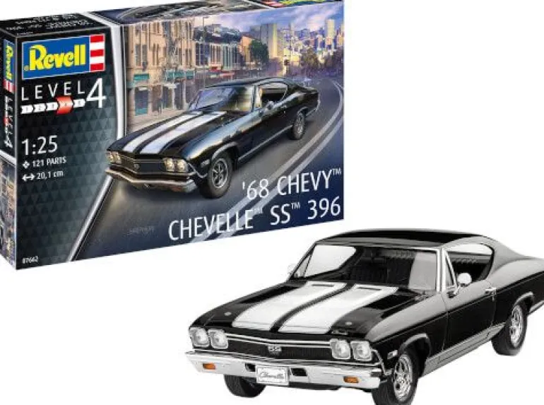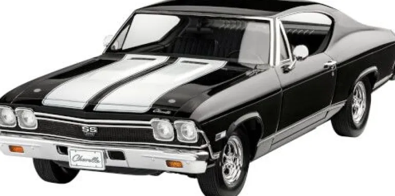Modellbausatz zu dem als „populärsten Mittelklassewagen der USA 1968“ bezeichneten Fahrzeug. Der SS 396, die leistungsfähigste Version des Chevelle mit 6,5-Liter-Motor, bot 396 PS Leistung. – Mehrteiliger V8-Motor – Viele Chromteile – Abziehbild mit diversen Kennzeichen (D, A, NL, B, F, GB, I, CH, USA)