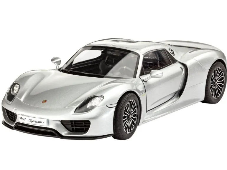 Schon die Proportionen dieses technischen Wunderwerks erinnern an einen Rennwagen. Gut verpackt verbergen sich 2 elektrische Motoren vor und hinter dem Fahrer, der V8 Motor mit seinen 608 PS befindet sich im Heck. Der 918 entpuppt sich als reinrassiger Supersportwagen mit Rennzulassung, der allerdings dank der neuartigen Antriebstechnik nur Verbrauchswerte von Mittelklassewagen vorweist. Porsche-typisch die Leistungswerte: von 0 auf 100 in sage und schreibe nur 2,6 Sekunden, Höchstgeschwindigkeit 345 km/h. Modell-Details: – Originalgetreu nachgebildete, mehrteilige Karosserie – Mehrteiliger Achtzylindermotor – Detailliert nachgebildete Elektromotoren – Strukturierte Vordersitze – Detaillierter Innenraum mit authentischem Instrumentenbord – Separater, beweglicher Heckspoiler – Detaillierte Radaufhängungen – Drehbare Räder – Detailliertes Chassis – Diverse verchromte Teile, darunter Felgen und Reflektoren – Umfassende Abziehbilder mit internationalen Kennzeichen (D, A, NL, F, B, CH, GB, I, RUS)