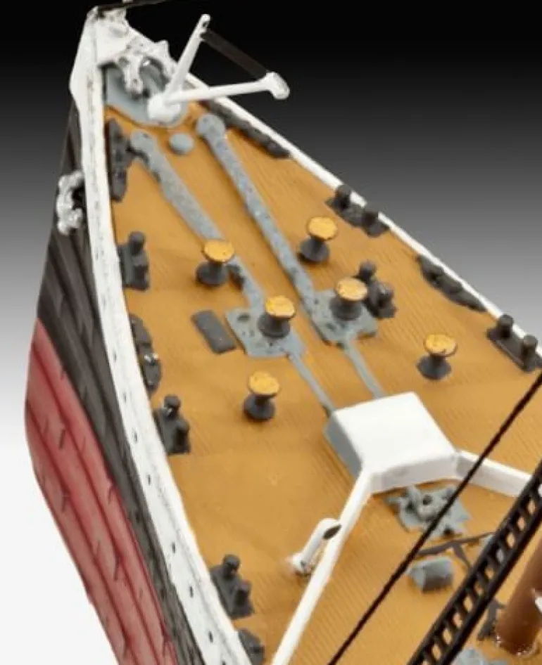 Der Tag des Unterganges des wohl bekanntesten Passagierschiffes der Welt jährt sich mittlerweile zum 100. Mal. Die Tragödie der Titanic kennt jeder, ob jung oder alt. Der elegante Dampfer sollte im angesehenen transatlantischen Liniendienst der White Star Line eingesetzt werden. Doch bereits auf der Jungfernfahrt nach New York kollidierte die Titanic am 14. April 1912 gegen 23:40 Uhr (Bordzeit) mit einem Eisberg. Das Schiff streift den Eisberg auf der Steuerbordseite und versinkt nach zwei Stunden und vierzig Minuten in den eisigen Fluten des Atlantiks. Nur 712 Menschen überlebten die Katastrophe. – Einfacher Zusammenbau dank verdrehsicherer Bauteile – Detaillierter Rumpf mit strukturierter Beplankung – Drei Schiffsschrauben – Detaillierte Decks mit Holzplanken-Struktur – Decksaufbauten mit durchbrochenen Fenstern – Rettungsboote mit Davits – Lastkräne – Detaillierte Schornsteine – Displayständer – Detailliertes Abziehbild