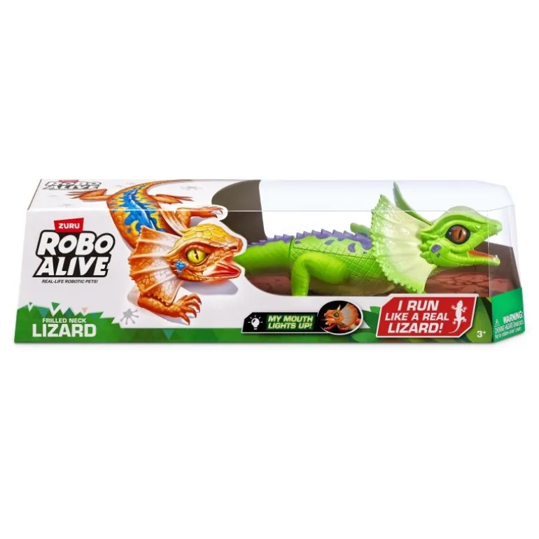 Bist du bereit, die Robo Alive Echse zu bändigen? Die Robotertechnologie ermöglicht der Echse, selbst die schnellsten Raubtiere zu überholen. Sie verfügt über lebensechte leuchtende Augen, einen Gummischwanz und einen -kopf!