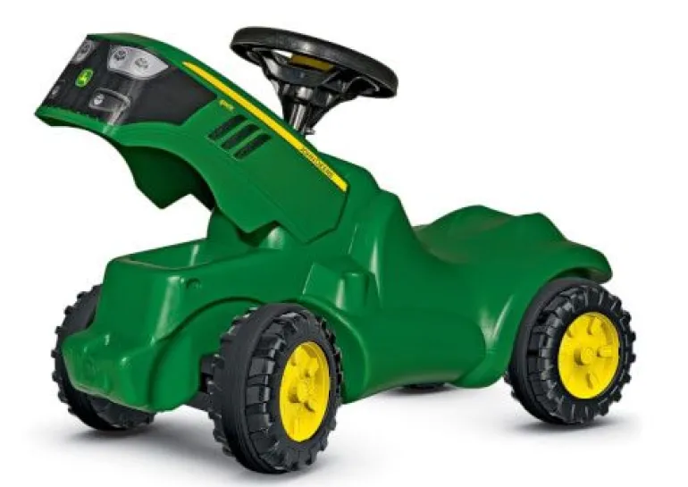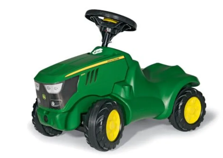 rollyMinitrac John Deere 6150R – Babyrutscher, Ablage unter der geöffneten Motorhaube, ergonomische Fahrzeugkontur mit Kniemulde, stabile Achsschenkellenkung, Lenkrad mit Hupe, Räder mit Flüsterlaufreifen