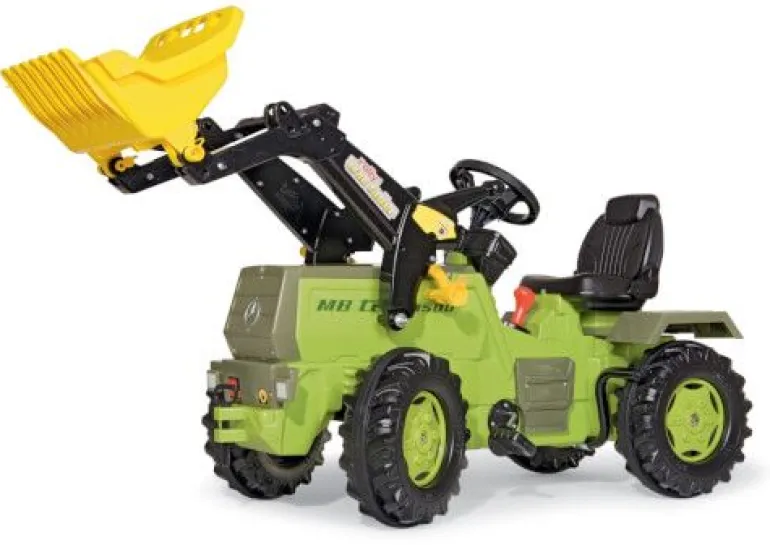 rollyFarmtrac Classic MB Trac 1500 – Trettraktor mit rollyTrac Lader für Kinder ab ca. 3 bis 8 Jahren, Sitz verstellbar, geschützter Integralkettenantrieb mit einstellbarer Pedalkurbel, Flüsterlaufreifen, extra stabile 12 mm Stahlhinterachse, Vorderradaufhängung mit Achsschenkellenkung, 2-Gang-Schaltung mit Handbremse, mit Funktionszubehör nachrüstbar