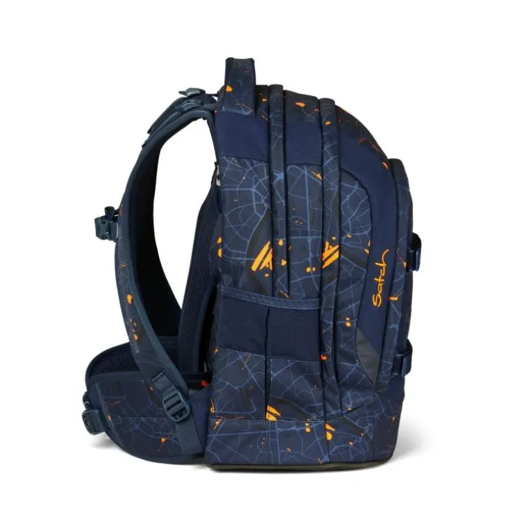 Satch entlastet und wächst mit: Aus dem Bergsport auf den Schülerrücken: Das satch Tragesystem garantiert die Verlagerung des Gewichts von den Schultern auf den stabilen Beckenbereich. Passgenaue Einstellung von 1,40 m – 1,80 m.