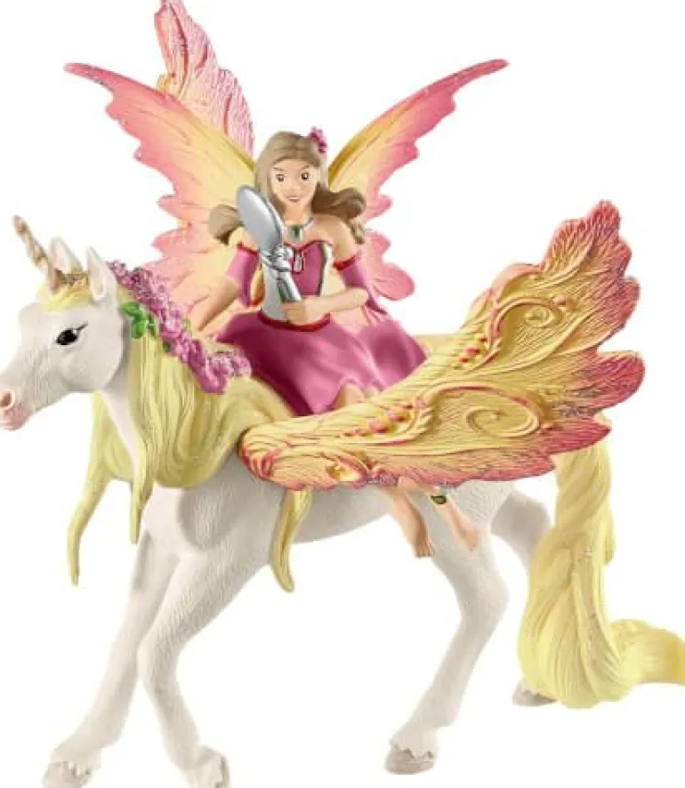 Die Schleich Figuren sind alle detailgetreu modelliert, liebevoll bemalt und stehen für pädagogisch wertvolles Spielen. Wenn Feya auf dem Rücken ihres Pegasus-Einhorns über die Wiesen bayalas fliegt und durch die Elfenstadt Soleyas reitet, drehen sich alle bewundernd nach den beiden um. Etwas Anmutigeres und Schöneres als die beiden findet man wahrscheinlich nirgendwo im ganzen Elfenreich. Feya liebt ihr fliegendes Einhorn über alles. Sie pflegt und umsorgt es stundenlang und bringt beinahe ebenso viel Zeit damit zu, es zu schmücken, wie sie es für sichselbst tut. Manchmal, wenn sie Prinzessin Eyela besuchen wollen, ist Feya etwas schusselig. Sie vergisst ihren Spiegel oder ihre Bürste, ohne die sie normalerweise nie aus dem Haus geht. Dann müssen die beidenauf halbem Weg wieder umdrehen und zurück fliegen und alle Elfen können sie an diesem Tag gleich mehrmals bewundern. Die beiden sind einfach wunderschön. Findest du nicht auch ?