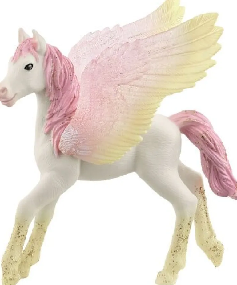 „Brr macht das Pegasus Fohlen der Schleich® bayala® Welt, wenn du ihm die rosa Mähne striegelst. Dabei kann aber auch mal ordentlich Glitzer in der Bürste hängen bleiben. Und wenn du unser junges Zauberpferd mal nicht verwöhnst, sitzt es am liebsten in deinem Fahrradkorb oder geht mit seinen jungen Ponybeinen auf Abenteuersuche mit dir.