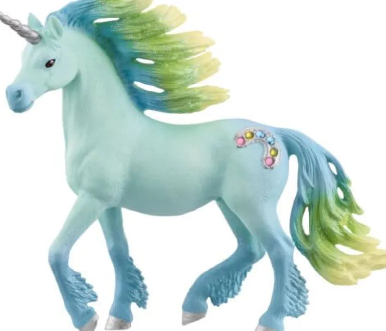 Der Experte für Süßes: Der Zuckerwatte Einhorn Hengst der Schleich® bayala® Welt. Bereits die Mähne dieses Pferdes ist süß, bunt und am liebsten geflochten. Hast du schon einmal sein Fell angefasst? Es ist weich wie Wolken. Aber bei großer Hitze auch etwas klebrig. Also lieber Hände waschen, wenn du ihn zu viel gestriegelt hast.