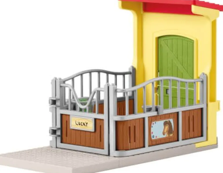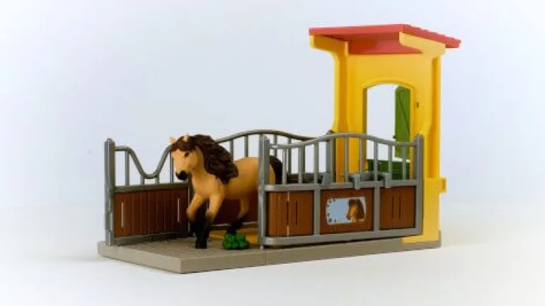 Das temperamentvolle Islandpony liebt es, auszureiten und über die Wiesen zu galoppieren. Noch mehr liebt es aber, danach heimzukommen und sich in seiner gemütlichen Box auszuruhen. Hier ist es zu Hause und hat alles, was es braucht. In der Raufe liegen sogar schon ein paar knackige grüne Äpfel bereit. Mmmh, lecker! Die mag es besonders gern. Wer die wohl dort bereitgelegt hat? Die gemütliche Ponybox lässt sich übrigens mit dem separat erhältlichen Großen Stall kombinieren.