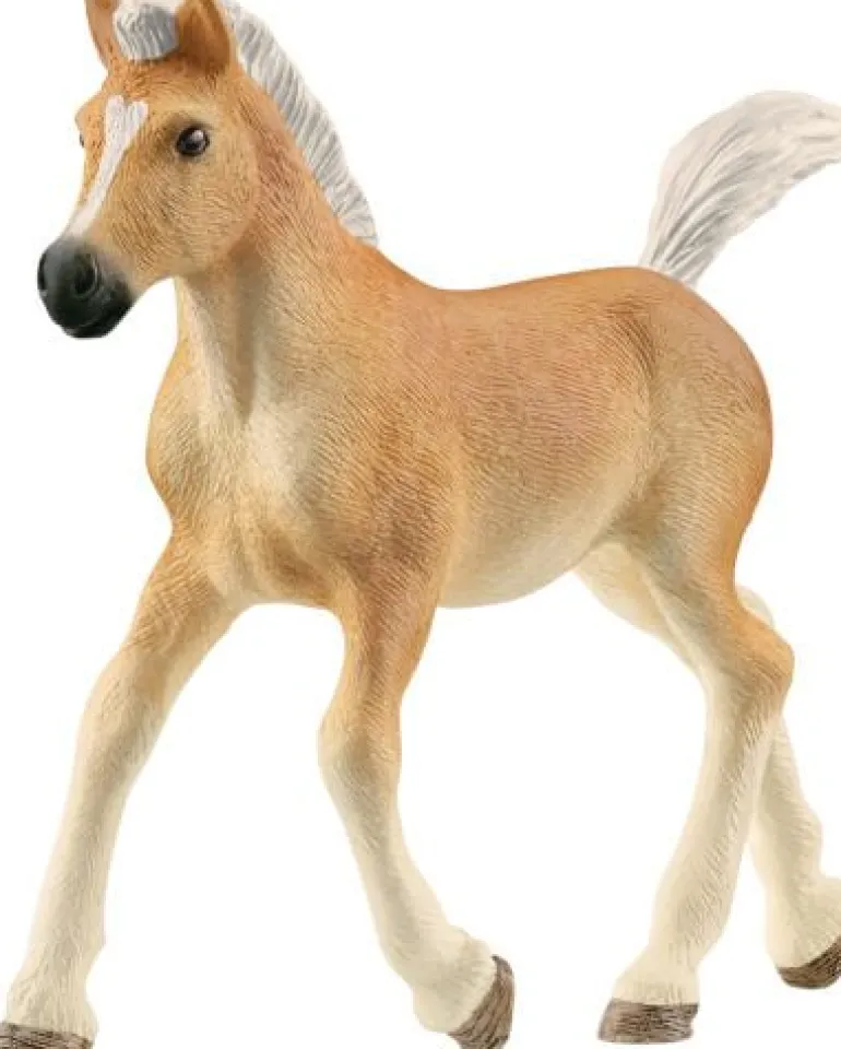 Dem kleinen Fohlen sieht man schon genau an, dass es einmal ein großer Haflinger werden will. Es hat das typische cremefarbene Fell und die schneeweiße Mähne. Sogar der kurze Schweif ist ganz weiß. Keck stellt es die Ohren auf und trabt über die Wiese. Vielleicht findet es neue Freunde?