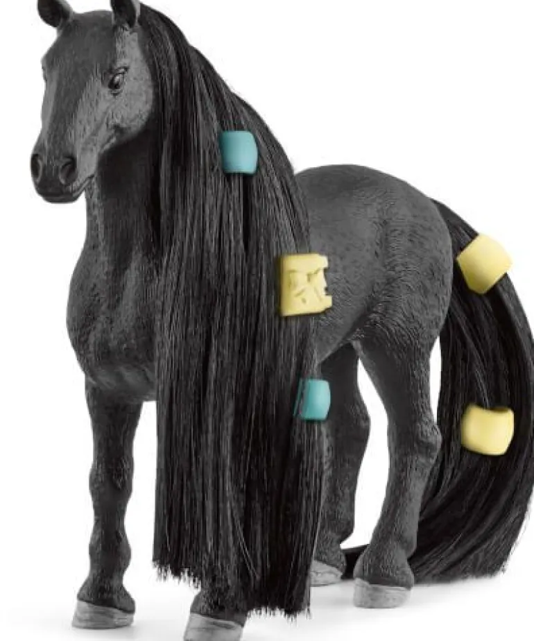 Zur neuen Schleich® Horse Club Sofia’s Beauties Spielewelt gehört auch die Beauty Horse Criollo Definitivo Stute. Sie ist eine wahre Rarität in der Kollektion von Schleich, denn ihre Mähne und ihr Schweif lassen sich kämmen. Vor ihrem pechschwarzen Fell wirken ihre Haarclips und -perlen wie knallbunte Inseln. Mit dem passenden separat erhältlichen Zubehör lassen sich ihre Mähne und ihr Schweif sogar austauschen.