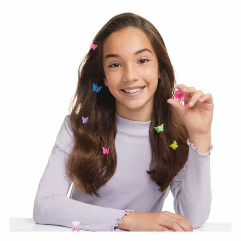 Inhalt: 6 Schmetterling Haarspangen, 1 Nagellack, 1 Bogen Nagelsticker, 1 Lipgloss, 1 Lipgloss Anhänger, 1 Anleitung.