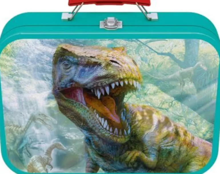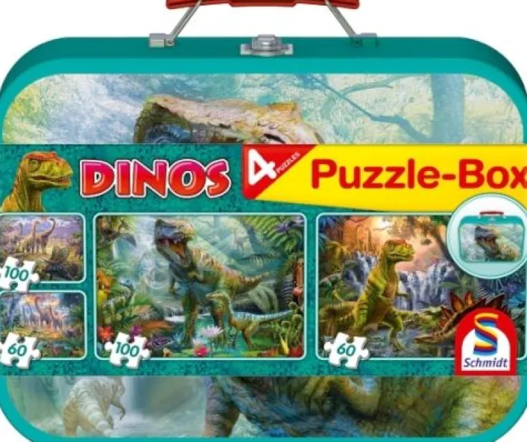 Puzzle-Box im Metallkoffer, Dinos, 2 x 60 Teile, 2 x 100 Teile.