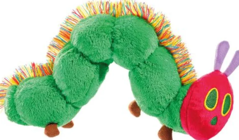Die kleine Raupe Nimmersatt ist ein absoluter Hingucker. Das gilt auch für die 28 cm große Raupe aus kuschligem Plüsch.