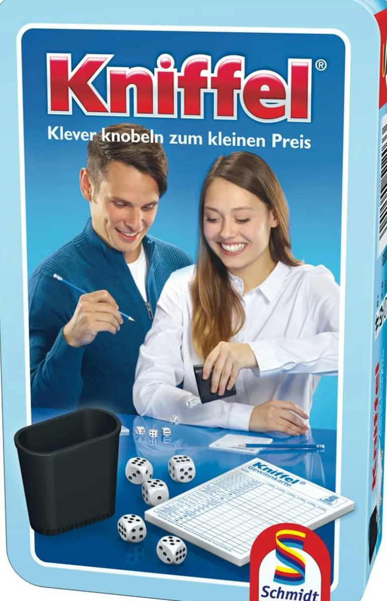 Mit Würfeln, einem Becher und einem Block ist hier alles zum Kniffeln bereit.