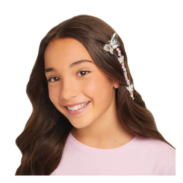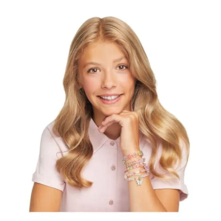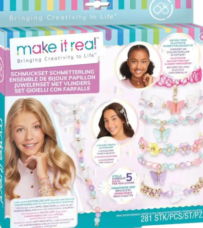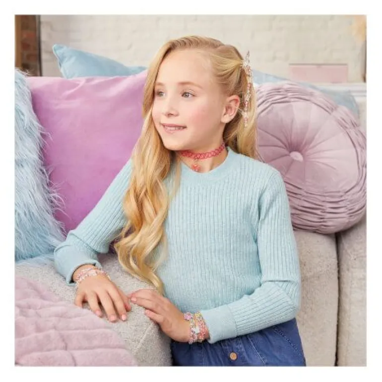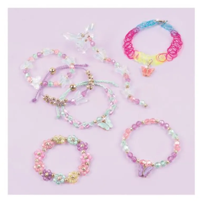 Set zum Herstellen von bunten Armbändern. Inhalt: 1 Transparente elastische Schnur (4 m), 2 Nylonschnur(2 m), 271 sortierte Perlen, 1 Haarspange in Schmetterlingsform,1 elastisches Halsband mit Karabinerverschluss, 3 Anhänger,1 Anleitungsblatt, 1 Basteltablett.