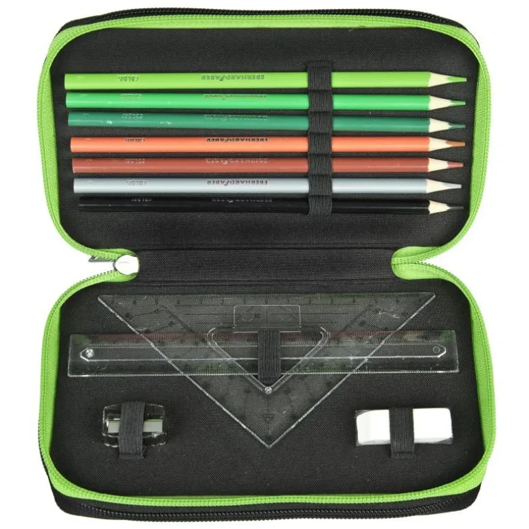 Mit Eberhard Faber Markenfüllung, 21 Buntstifte, 2 Bleistifte, 17 cm Lineal, Geodreieck, Radierer, Spitzer, 2 ABC Schablonen, Stundenplan (Buntstifte+Bleistifte aus 52% recyceltem Material), Polyester