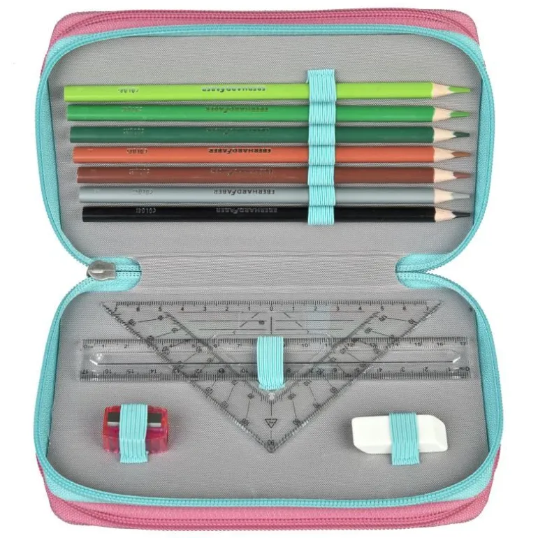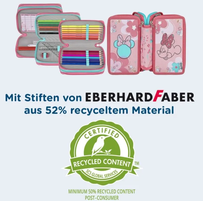 Mit Eberhard Faber Markenfüllung, 21 Buntstifte, 2 Bleistifte, 17 cm Lineal, Geodreieck, Radierer, Spitzer, 2 ABC Schablonen, Stundenplan (Buntstifte+Bleistifte aus 52% recyceltem Material), Polyester