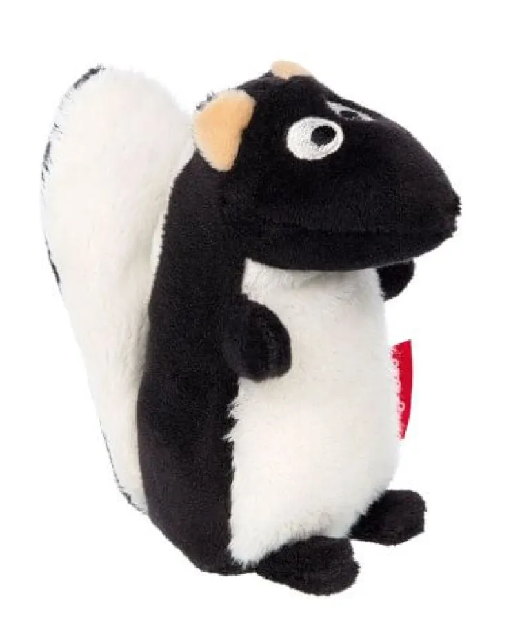 Entdecken, Greifen und Spielen – Babys entwickeln sich rasend schnell. Sie brauchen immer wieder neue Herausforderungen und Aufgaben. Damit es den kleinen Entdeckern nicht langweilig wird, hat sigikid jede Menge spannende Babyspielsachen entwickelt, die zum Entdecken, Greifen und Spielen animieren – das ideale Geschenk zur Geburt. Das schwarz-weiße Stinktier, mit dem für ihn typisch hochgestellten flauschigen Schwanz, lässt sich gut fassen und vertreibt Ihrem kleinen Liebling ab dem 3. Lebensmonat die Zeit in den zunehmend länger werdenden Wachphasen. Der weiche Materialmix setzt haptische Akzente für die kleinen Hände und wartet darauf, mit allen Sinnen erforscht zu werden. Ein besonderer Spaß ist die eingebaute Rassel – eine klasse Belohnung für die ersten, erfolgreichen Greifversuche. Der kuschelweiche Plüsch aus 100% Polyester ist hochwertig verarbeitet und hält auch häufiger Wäsche bei 30° stand. Das Babyspielzeug ist ca. 9 cm groß. Passend zum Greifling gibt es auch den sehr beliebten Stinktier-Anhänger (Art. Nr. 41012).