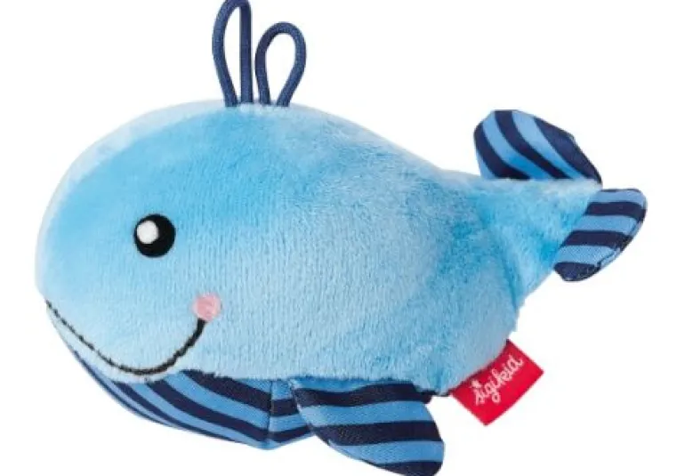 Erste Greifversuche für kleine Wasserratten. Der weiche Greifling Wal bereitet dem kleinen Schatz große Freude. Kleine Hände bekommen den witzigen Spielgefährten gut zu fassen und entlocken ihm sicher schnell ein lustiges Rasselgeräusch.