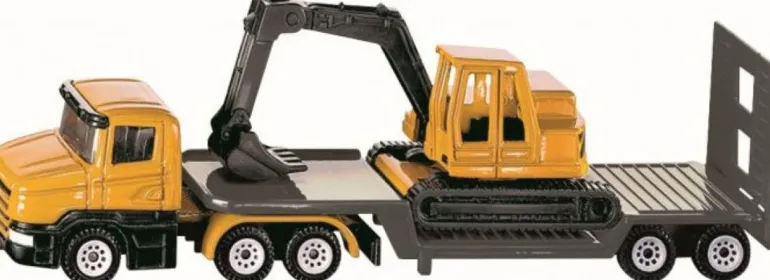 SIKU 1611 Tieflader mit Bagger, SIKU Spielzeugmodelle sind seit mehr als 50 Jahren ein Garant für Qualität und Sicherheit.