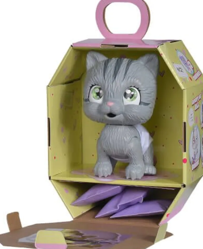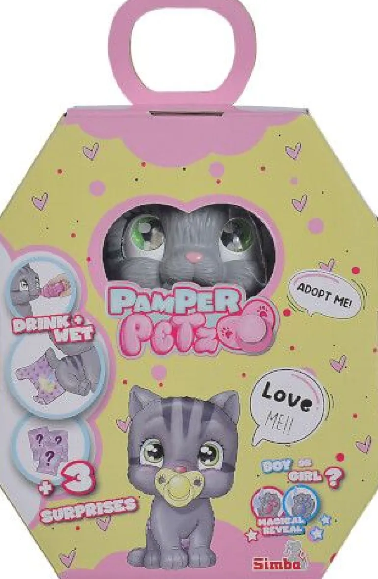Pamper Petz – die süßen Pamer Petz Tierbabys suchen einen Besitzer, der sie adoptiert, ihnen einen Namen gibt und sich liebevoll um sie kümmert. Die süße Windelbande besteht aus einem Hündchen, einem Kätzchen und einem Häschen, die alle eine Windel tragen. Mit Trink- und Nässfunktion – das süße Katzenbaby mit den großen glitzernden Augen kann richtig trinken. Ab und zu macht es auch einmal in die Windel. Dazu klappt man einfach die Hinterbeine nach vorne und setzt das Kätzchen hin. Ist die Windel nass, verfärbt sich das Innere Gelb. Magische Pfote – ob es sich bei dem eigenen Haustier um einen Jungen oder ein Mädchen handelt, verrät die magische Pfote. Wischt man mit Wasser darüber, so verfärbt sich diese entweder Blau oder Pink und gibt somit Aufschluss über das Geschlecht. Mit drei Überraschungen – im Set sind neben dem 15cm großen Katzenbaby drei Überraschungen zum Pflegen und Füttern des Kätzchens sowie eine Adoptionsurkunde zum Beschriften enthalten. Simba – Elefantenstarker Spielspaß. Im Zentrum der Produktentwicklung steht die Begeisterung der Kinder. Für Jungen und Mädchen, Klein und Groß. Kinder sollen Spaß haben und gefördert werden.