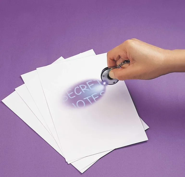 Stift deine geheimen Notizen auf und mache sie mit dem UV-Licht sichtbar.