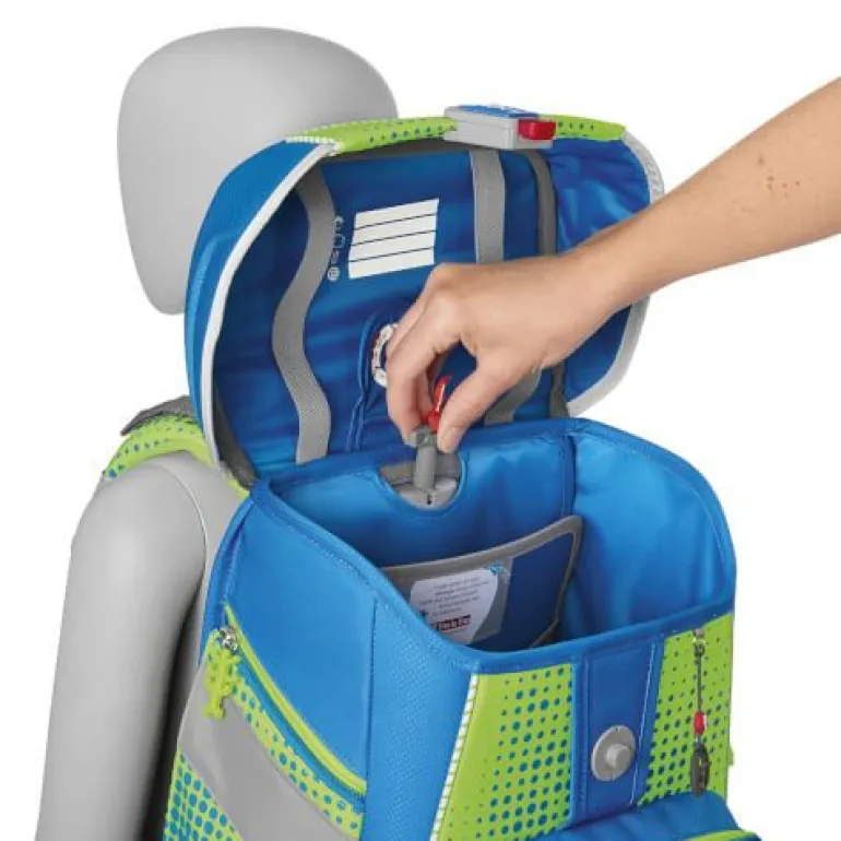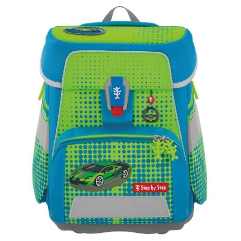 – zur Beförderung von Schulutensilien vom Stift bis zum Sportzeug 5-teiliges Schulranzen-Set bestehend aus: – Schulranzen – Federmäppchen, komplett bestückt – Schlamperetui – Turnbeutel – MAGIC MAGS (2 Applikationen und 1 Anhänger) Schulranzen: – der geräumige Schulranzen mit extra Leuchtkraft – fluoreszierende Neonfarben im Schulranzendruck unterstützen die Sichtbarkeit – wechselbare Motive, MAGIC MAGS – EASY GROW SYSTEM: Schulranzen wächst von der 1. bis zur 4. Klasse mit – ultraleichte, elastische Fiberglas-Rückenkonstruktion und ergonomisch geschwungene, atmungsaktive Rückenpartie – verstellbare und ergonomische Schultergurte – Lageverstellriemen zur körpernahen Schulranzen-Positionierung – abnehmbarer, höhenverstellbarer Brustgurt – Gurtenden-Einhängung – gepolsterte, abnehmbare Hüftflosse – seitlich nach außen wachsende Reißverschluss- und Fronttasche mit Auslaufösen – Aufhängeschlaufe und gepolsterter Tragegriff – Fidlock-Magnetverschluss – Hauptfach mit Bücherfach – Laschen zur Aufbewahrung des Federmäppchens im Deckel – wasserdichte Bodenplatte – reflektierende Elemente sorgen für Sicherheit im Straßenverkehr und bei Dunkelheit – strapazierfähiges und wasserabweisendes Material mit 100% PFC-freier Beschichtung – die Textilien bestehen zu 100% aus recycelten PET-Flaschen – sozial verträglich und verantwortungsvoll produziert Verbraucherhinweis: Die Bestandteile des MAGIC MAGS-Zubehörs lassen sich beliebig oft von den entsprechenden Flächen des Schulranzens abnehmen und durch andere MAGIC MAGS ersetzen. Diese sind in 3er-Sets separat erhältlich. Für eine neutrale Gestaltung des Ranzens können die MAGIC MAGS einfach komplett weglassen werden, ohne dass störende Klettflächen entstehen. So wird jeder Schulranzen zum Unikat. Das Gewicht des Schulranzen-Korpus ohne abnehmbare Elemente beträgt ca. 1250 g. Das Gesamtgewicht des Schulranzens mit allen abnehmbaren Elementen beträgt ca. 2050 g.