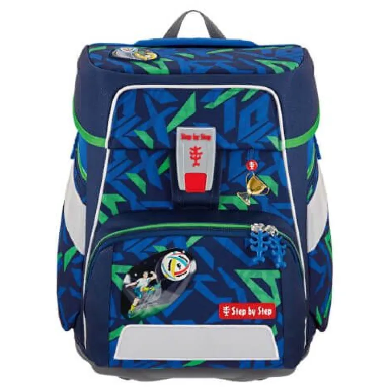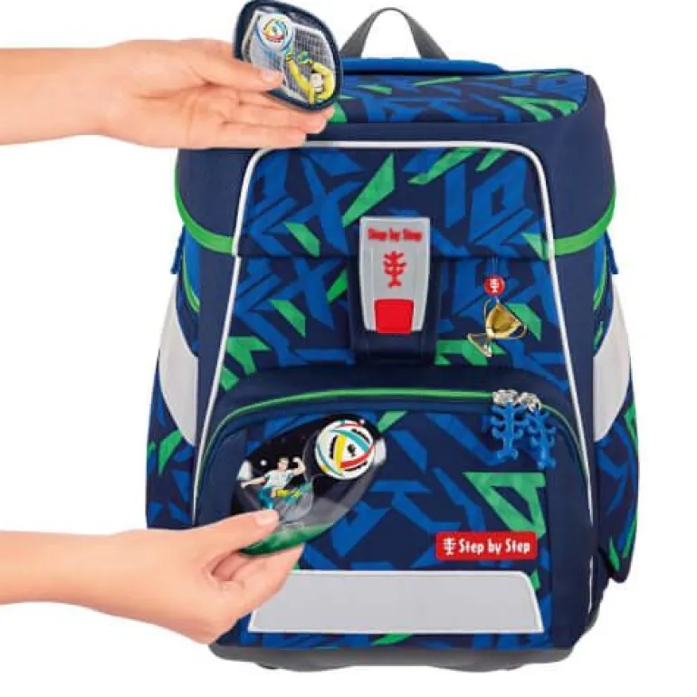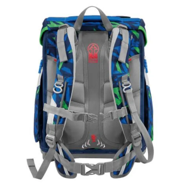 – zur Beförderung von Schulutensilien vom Stift bis zum Sportzeug 5- teiliges Schulranzen-Set bestehend aus: – Schulranzen – Federmäppchen, komplett bestückt – Schlamperetui – Turnbeutel – MAGIC MAGS (2 Applikationen und 1 Anhänger) Schulranzen: – der geräumige Schulranzen – wechselbare Motive, MAGIC MAGS – EASY GROW SYSTEM: Schulranzen wächst von der 1. bis zur 4. Klasse mit – ultraleichte, elastische Fiberglas-Rückenkonstruktion und ergonomisch geschwungene, atmungsaktive Rückenpartie – verstellbare und ergonomische Schultergurte – Lageverstellriemen zur körpernahen Schulranzen-Positionierung – abnehmbarer, höhenverstellbarer Brustgurt – Gurtenden-Einhängung – gepolsterte, abnehmbare Hüftflosse – seitlich nach außen wachsende Reißverschluss- und Fronttasche mit Auslaufösen – Aufhängeschlaufe und gepolsterter Tragegriff – Fidlock-Magnetverschluss – Hauptfach mit Bücherfach – Laschen zur Aufbewahrung des Federmäppchens im Deckel – wasserdichte Bodenplatte – reflektierende Elemente sorgen für Sicherheit im Straßenverkehr und bei Dunkelheit – strapazierfähiges und wasserabweisendes Material mit 100% PFC-freier Beschichtung – die Textilien bestehen zu 100% aus recycelten PET-Flaschen – sozial verträglich und verantwortungsvoll produziert Verbraucherhinweis: Die Bestandteile des MAGIC MAGS-Zubehörs lassen sich beliebig oft von den entsprechenden Flächen des Schulranzens abnehmen und durch andere MAGIC MAGS ersetzen. Diese sind in 3er-Sets separat erhältlich. Für eine neutrale Gestaltung des Ranzens können die MAGIC MAGS einfach komplett weglassen werden, ohne dass störende Klettflächen entstehen. So wird jeder Schulranzen zum Unikat. Das Gewicht des Schulranzen-Korpus ohne abnehmbare Elemente beträgt ca. 1250 g. Das Gesamtgewicht des Schulranzens mit allen abnehmbaren Elementen beträgt ca. 2050 g.