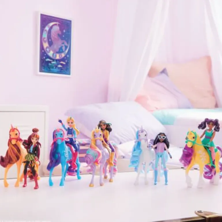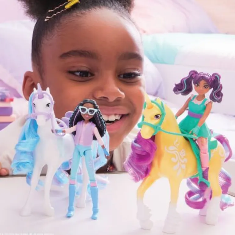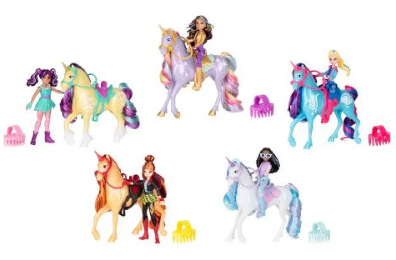 Unicorn Academy Small Doll & Unicorn bietet zauberhafte Spielzeugsets für kleine Einhornliebhaber. Jedes Set enthält eine voll bewegliche Puppe mit sieben Gelenkpunkten und ein Einhorn mit schimmernder Mähne. Ab 4 Jahren