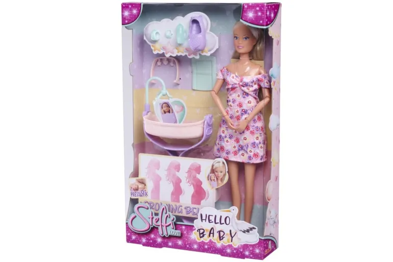 Steffi Love Hello Baby schwangere Steffi mit wachsendem Bauch, Babybett und viel Zubehör, ca. 29 cm