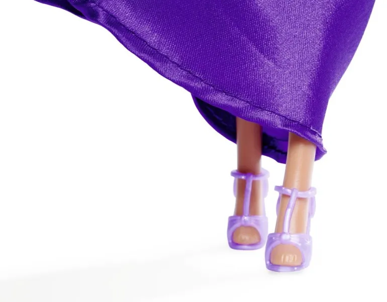 Steffi in einem glamourösen Kleid mit High Heels, Ohrringen und Glitzertasche