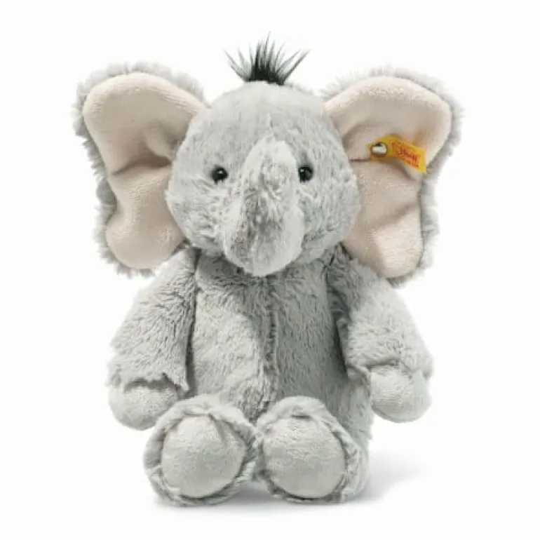 Der 30 cm große Ella Elefant aus der Soft Cuddly Friends Serie ist ein wahrer Schatz zum Schmusen und Spielen. Der süße schwarze Haarflaum passt perfekt zum liebevollen Gesicht mit den wachen Augen und dem schwarz garnierten Mund. Die großen Elefantenohren in Grau und Rosa sind prima zum Greifen geeignet. Granulatsäckchen im Gesäß, den Händen und den Füßen sorgen dafür dass er überall seinen festen Platz hat.