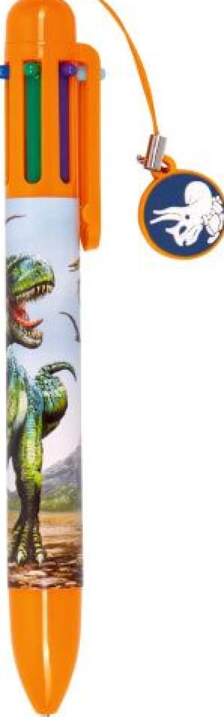 Dinostarker 6-Farb-Kuli mit Anhänger für alle T-Rex-Fans! Mit Minen in hellblau, orange, rot, blau, hellgrün und lila.