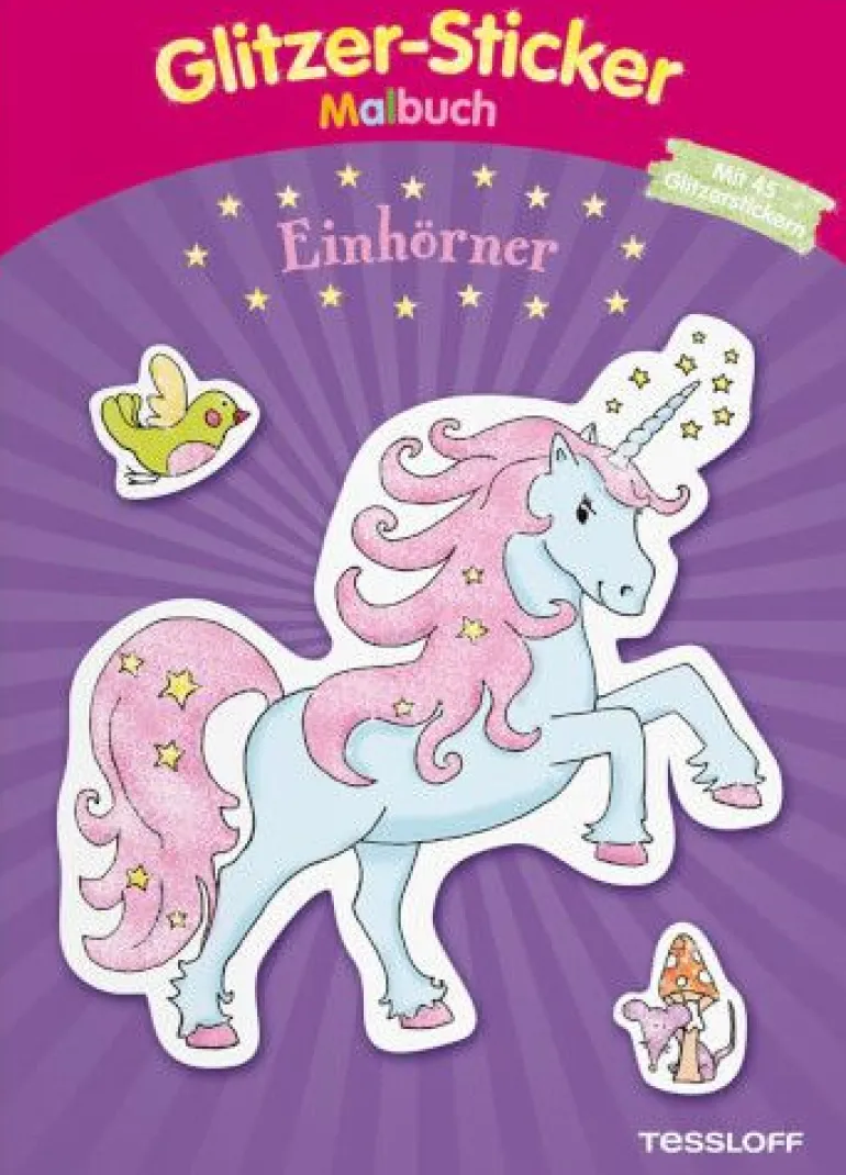 Einhörner stehen als Symbol für das Gute. Und sie sollen Glück bringen, sagt die Legende. In jedem Fall aber werden kleine Künstler großen Spaß daran haben, die zauberhafte Welt in diesem Malbuch nach Lust und Laune auszumalen. Die 45 großflächigen, glitzernden Sticker auf dem Bogen in der Heftmitte machen die Bilder noch schöner.