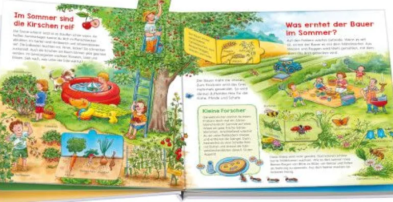 Welche Blumen blühen im Frühling? Wann werden die Kirschen reif? Was macht das Eichhörnchen im Winter? Die Reihe WAS IST WAS Kindergarten wendet sich an die Jüngsten ab 3 Jahren, die den Alltag in der Kita hautnah miterleben. Jedes Büchlein, jede Story nimmt dort ihren Anfang. Gemeinsam geht es auf Entdeckungsreise: durch die Jahreszeiten, in den Wald, auf den Bauernhof und zur Ritterburg. Das farbige, fröhliche Design, zahlreiche Klappen, Suchbilder und kleine Experimente und Basteleien laden zum genauen Hinschauen und Entdecken ein.
