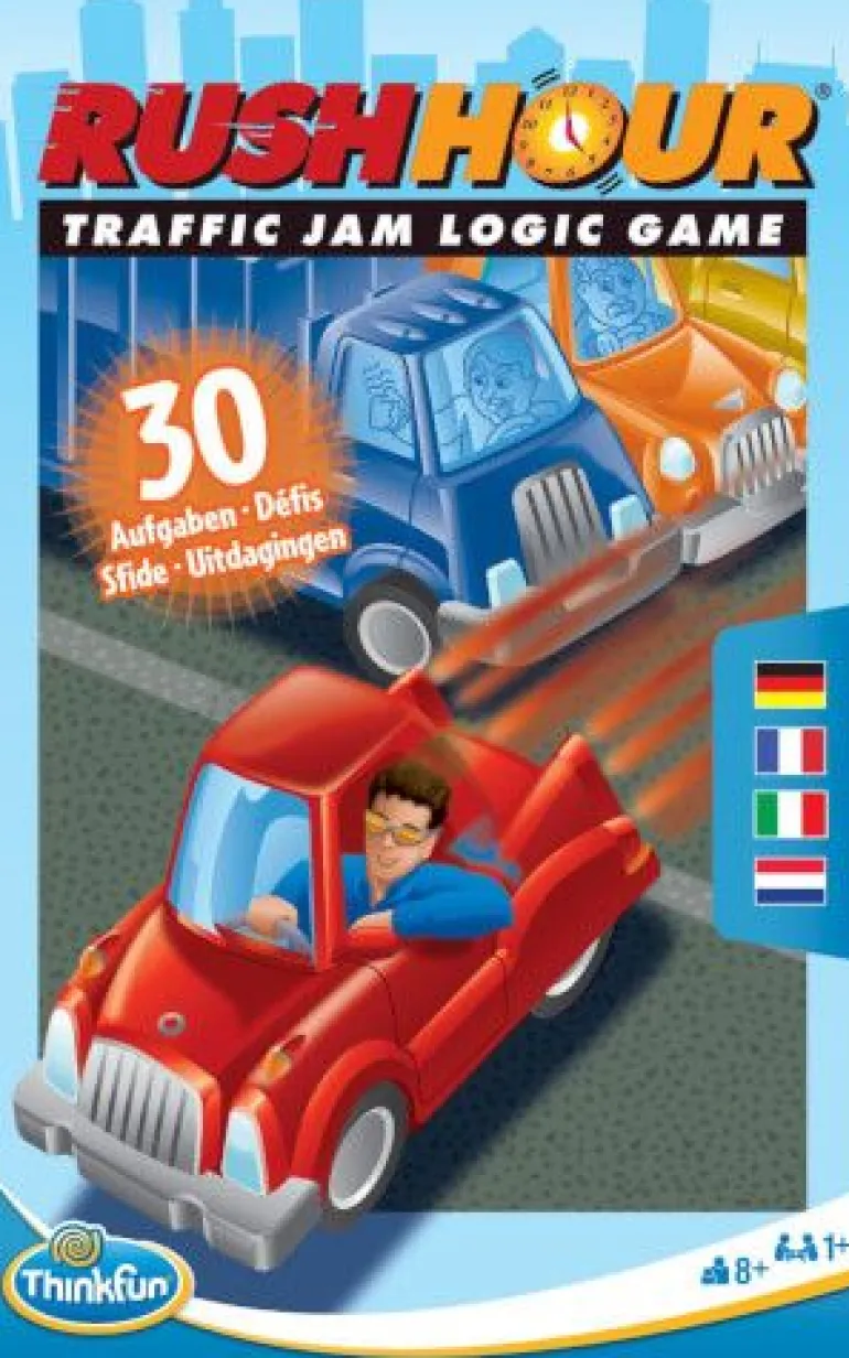 Rush Hour – Der beliebte Klassiker unter den Logikspielen im kompakten Format und damit ideal für unterwegs! Nur wer geschickt die Fahrzeuge auf dem Spielbrett verschiebt, findet für das rote Auto einen Weg aus dem Stau! 30 Aufgaben in drei verschiedenen Schwierigkeitsstufen sind im Spiel enthalten und fordern das logische Verständnis des Spielers mächtig heraus.