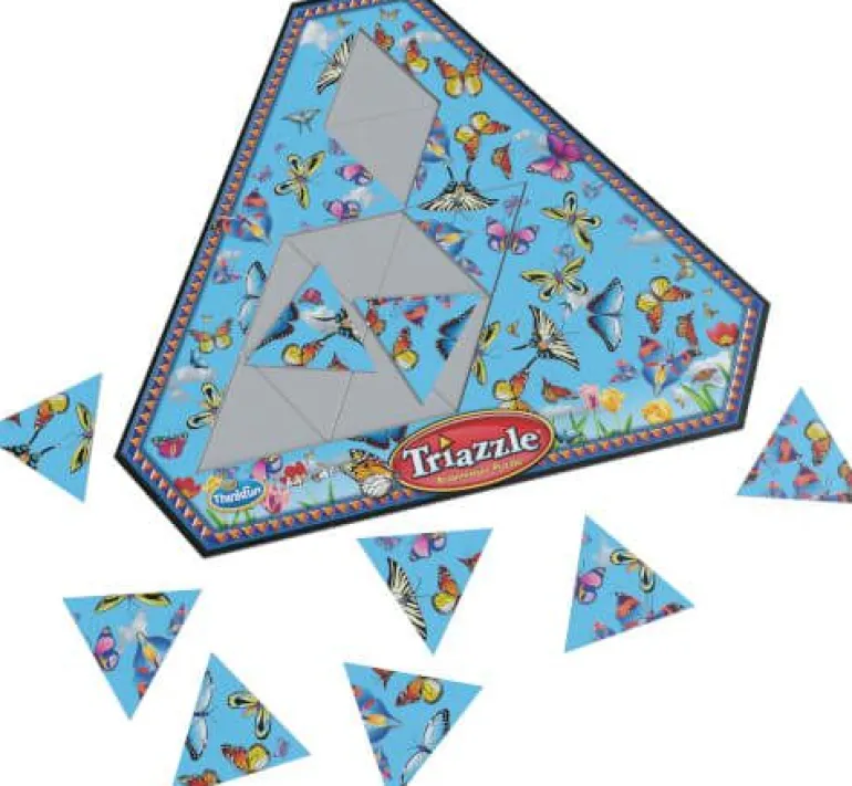 Bei den Logikpuzzlen Triazzle müssen die 16 dreieckigen Teile so in den Rahmen eingefügt werden, dass alle Bildhälften auf den Puzzleteilen wieder zusammen passen.Tausende von Möglichkeiten, aber nur eine Lösung!