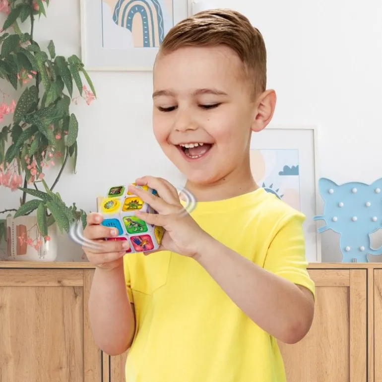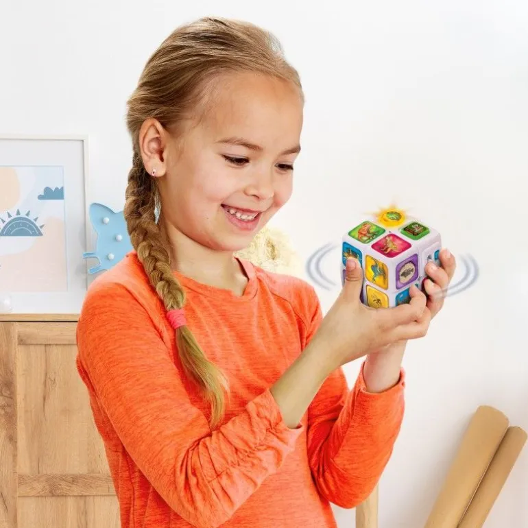 Dinostarke Lernabenteuer mit dem interaktiven Twist & Learn Würfel! Interaktiver drehbarer Lernwürfel mit spannendem Dinowissen für kleine Forscher und Forscherinnen, der das Gedächtnis trainiert und die Logikfähigkeit verbessert. 3 Spielmodi: # Lernen: spielerisch in die Welt der Dinos eintauchen und Wissenswertes über die verschiedenene Saurier und Fossilien erfahren # Abenteuer: den Hinweis anhören und durch Drehen des Würfels den gesuchten Dino oder das richtige Fossil mit der Erkennungsbasis verbinden # Dino#Wettlauf: für noch mehr Spaß und Spannung wird hier die Suche nach der richtigen Antwort im Wettlauf gegen die Zeit gespielt Zahlreiche Licht# und Soundeffekte führen durch die verschiedenen Spielmodi. Durch Drehen des 3D#Würfels in den Spielen antworten oder Sätze und Lichteffekte auslösen. Lerninhalte: Spannendes Wissen über prähistorische Lebewesen, Gedächtnis trainieren, Logikfähigkeit verbessern, Feinmotorik schulen und mehr als 50 spannende Dinofakten. Dank praktischer Handschlaufe überall hin mitnehmen. Lautstärkeregler, kindersicheres Batteriefach und Abschaltautomatik. Demobatterien sind enthalten.