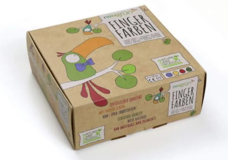 Farben: blau, gelb, rot, gürn. Tukan “Aki“ ist ganz wild auf Bio-Fingerfarben von neogrün. Am liebsten fliegt er von Ast zu Ast und bemalt den ganzen Dschungel in blau, gelb, rot und grün. neogrün Bio-Fingerfarben sind der perfekte Spaß für jedes Alter, der die Freiheit des unbegrenzten Spiels mit der sicheren Sinneserfahrung verbindet. Hergestellt aus natürlichen, nachwachsenden Bio-Rohstoffen mit sicheren pflanzlichen und mineralischen Pigmenten. Die besonders cremige, tropffreie Konsistenz und extraflache Becher machen neogrün Fingerfarben zu einem besonderen Erlebnis und sind ideal für kleine Künstler. Frei von Weizen, Soja, Erdnüssen und Baumnüssen, Milch, Fisch und Eiern.“