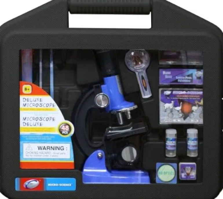 Im Koffer ist ein Mikroskop enthalten und diverses Zusatzmaterial. Ideal zum Forschen und Lernen. Ab 8 Jahren.
