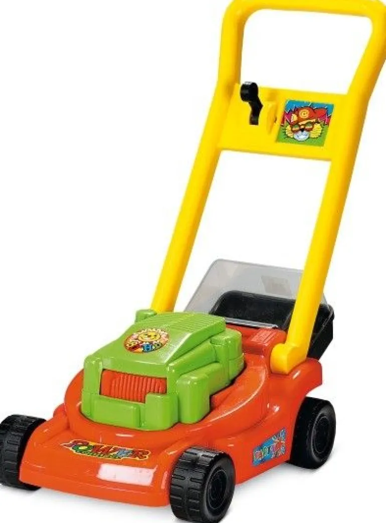 Mit Deinem neuen Rasenmäher kannst Du Papa im Garten helfen.