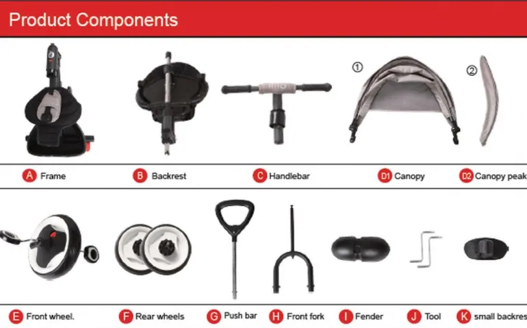 Das Dreirad ist mit einer einstellbaren, teleskopische Schubstange ausgestattet und lässt sich leicht zusammenklappen.