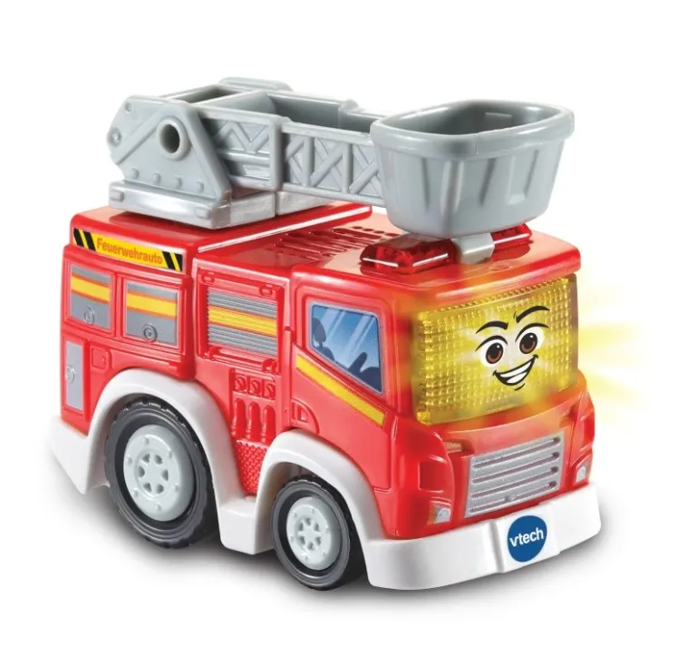 Hallo! Ich bin ein fleißiges Feuerwehrauto! Spricht fröhliche Sätze, spielt kindgerechte Melodien und Lieder und macht lustige Geräusche. Eine aufleuchtende Gesichtstaste zum Drücken. Realistisches und detailgetreues Design: Kühlergrill, Radkappen, detailreiche Seitenwand,.